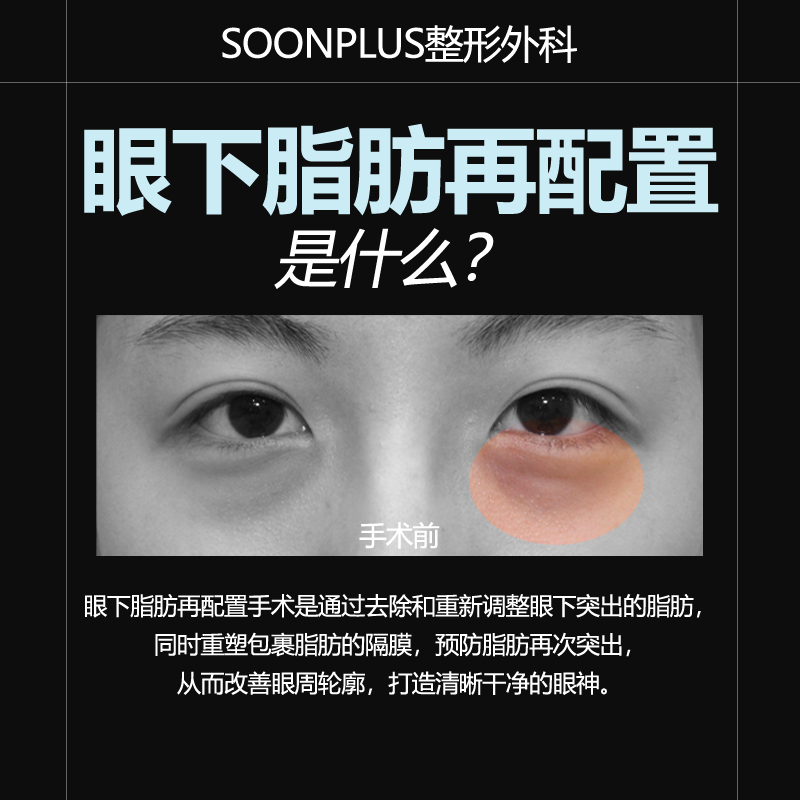 通过眼下脂肪再配置手术,去除并重新调整突出脂肪。