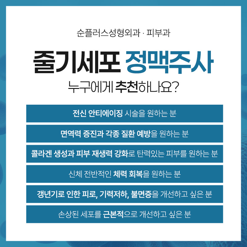 | 줄기세포주사 Q&A 총정리 [연령대별 효과, 당일시술, 시술주기, 유지기간] (1) | 2025.06.04 |