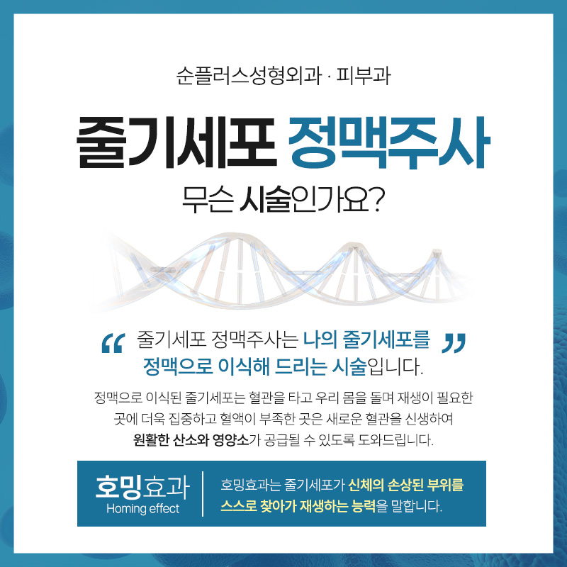 재생능력이 뛰어난 효과로 노화를 경험하는 40대 이상의 분들이 줄기세포정맥주사를 고려하게 되는데요.