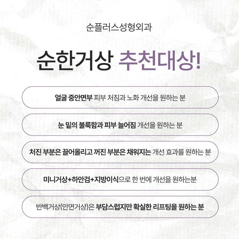위와같은 고민을 하는 분들에게 순플러스 순한거상 수술을 추천할 수 있습니다.