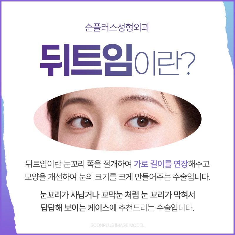 눈꼬리내리기 뒷트임, 가로길이 확장으로 눈매를 시원하게