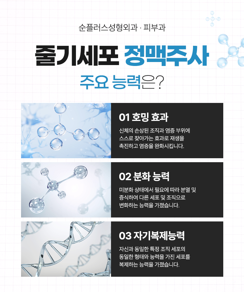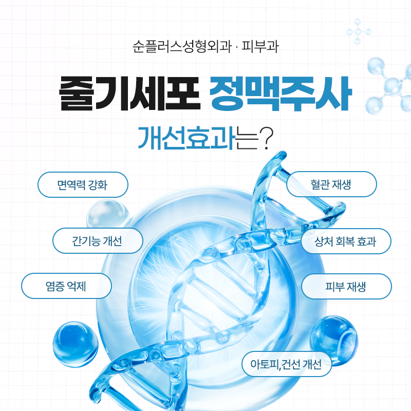 줄기세포 정맥주사의 효과, 효능은 손상된 조직 회복과 면역 기능 강화, 혈관 생성 촉진, 염증 완화, 간기능 개선, 체력 기능 개선 등 여러가지 항노화 효과를 기대합니다.